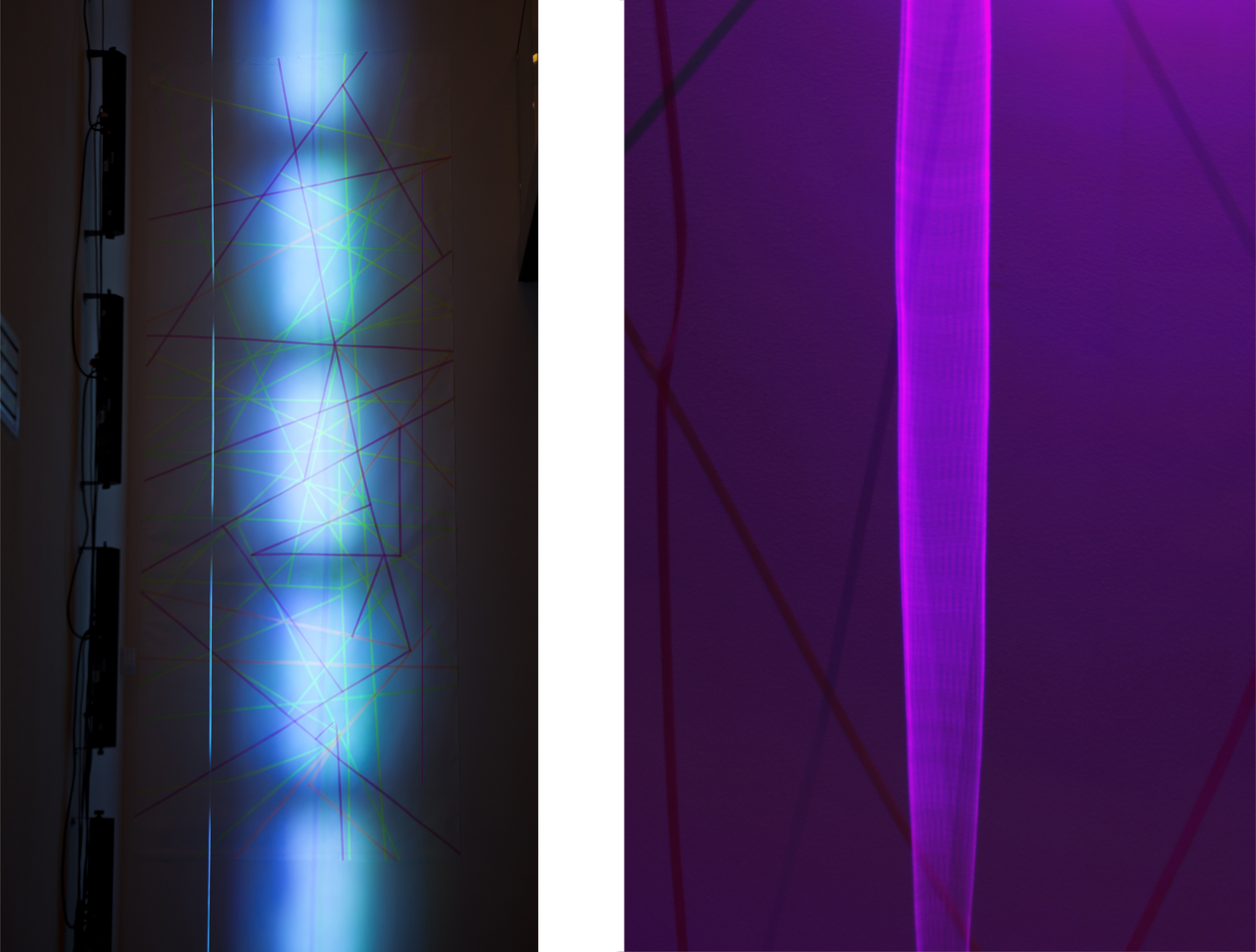 A series of installations where low sound frequencies composition are made tangible through strings and the stroboscopic effect